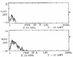圖9參考點豎向振動速度(下)和測點2處水平向振動位移(上)頻譜