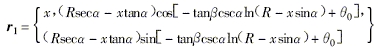 (5)- 雖然根據(jù)定義①可按式(5)進行刃口曲線設(shè)計,但在數(shù)控加工時往往不能實現(xiàn)一次成形(除非前刀面與其它部分的溝槽曲面分兩道工序加工)。若采用砂輪一次成形,則在砂輪接近球頂時會發(fā)生過切。由于在約1 / 7 球面半徑的球頂區(qū)域存在問題,因此必須用別的刃形來替代這段螺旋刃口曲線。