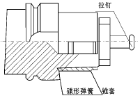 - KM工具系統是美國肯納金屬(Kennametal)公司及德國維迪亞(Widia)公司聯合研制的(見圖2b),其基本形狀與HSK很類似,也是采用了1:10 的空心短錐配合和雙面定位方式。主要的差別在于夾緊機構的不同,KM刀柄是使用鋼球斜面鎖緊,夾緊時鋼球沿拉桿凹槽的斜面被推出,卡在刀柄上的鎖緊孔斜面上,將刀柄向主軸孔拉緊,刀柄產生彈性變形使刀柄端面與主軸端面貼緊。
