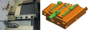 μ系列臥式加工中心可用于加工汽車發動機缸體汽缸孔和曲軸頸孔、精密傳動箱、泵體等箱體類零件,并可應用于模具工業、軍工、航空航天等領域進行空間復雜曲面的加工(圖11、12)。
