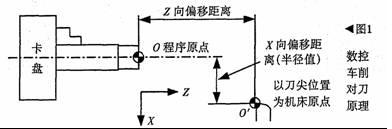 編程員按程序坐標系中的坐標數據編制刀具(刀尖)的運行軌跡。由于刀尖的初始位置(機床原點)與程序原點存在X向偏移距離和Z向偏移距離,使得實際的刀尖位置與程序指令的位置有同樣的偏移距離,因此,須將該距離測量出來并設置進數控系統,使系統據此調整刀尖的運動軌跡。