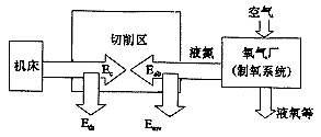 - 若我們從資源的綜合利用的角度出發,把制造廠建在氧氣廠附近,直接利用氧氣廠的廢液——液氮作為低溫加工系統的低溫源,而液氫、液氧等輸出供他用,形成資源綜合優化利用系統,最大限度的提高資源綜合利用率。另外還省去切削液供應及回收,減少了資源消耗,降低了低溫加工的成本,提高其經濟可行性。如圖4所示。圖中 Ec#p#分頁標題#e#——切削時變換為熱能的能量;