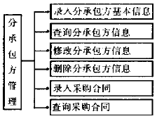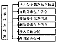 - 分承包方管理 分承包方管理子模塊用于管理分承包方的相關信息,用圖表表示分承包方管理子模塊的具體功能如圖1所示。