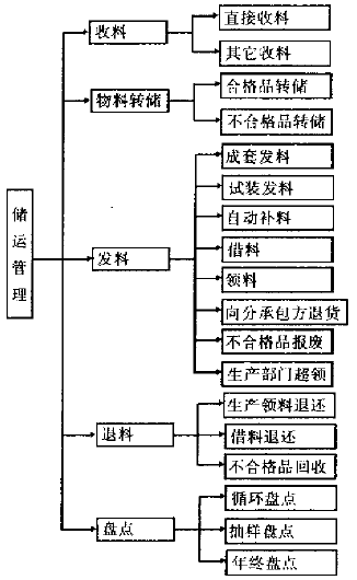 - 儲運管理 儲運管理的主要功能是在供、需之間建立緩沖區,作為一個物料存儲緩沖區,庫存減緩用戶需求與企業生產能力之間、最終裝配需求與零件可用性之間、某工序所需要的物料與前序輸出之間、生產制造與分承包方之間的供需矛盾。庫存將需求與隨時的、直接的、對供應的依賴關系分開。庫存的主要功能是提供各項物質,以保持從生產加工到用戶的物流和生產流暢通,同時實現某一服務水平的投資最小。其具體功能如圖3所示。