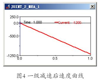 對小齒輪的旋轉副J O I N T _1或驅動MOTION_1進行角位置分析。在ADAMS/View工作窗口中用鼠標右鍵點擊小齒輪的旋轉副JOINT_1,選擇Modify命令,在彈出的修改對話框中選擇測量(Measures)圖標,在彈出的測量對話框中,將Characteristic欄設置為Ax/Ay/Az Projected Rotation,將Component欄設置為Z,From/At欄默認,點OK確認。生成的時間-速度曲線如圖3所示.