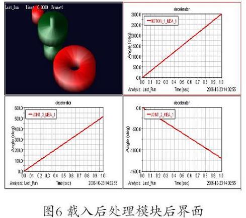 測量完成后,進入后處理模塊,右鍵單擊選擇分成四部分的窗口,分別加載動畫和三條曲線如圖6所示。