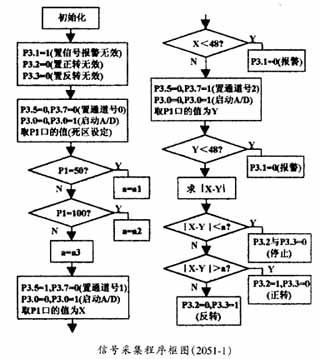信號(hào)采集程序應(yīng)用于2051-1。初始化是給2051-1的各端口及各寄存器設(shè)置一個(gè)初始狀態(tài),例如P3.1=1,P3.2=0,P3.3=0,表示將P3口的此三位分別設(shè)為