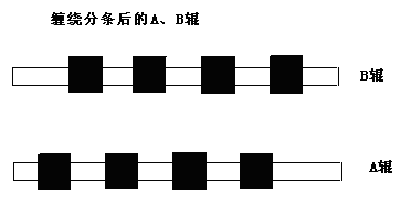 ● 在切刀處,切刀旋轉,把整張紙切成8等份,1、3、5、7分條纏附在A輥上,2、4、6、8分條纏附在B輥上