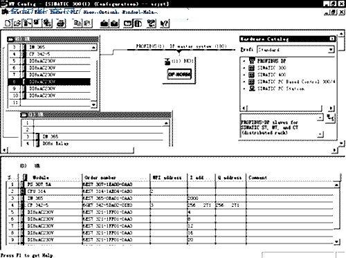利用操作方便,界面友好的Step 7編程軟件對主站PLC進行編程,將程序下載到主站PLC16K的EPROM中,并對系統進行組態。畫面如圖2。