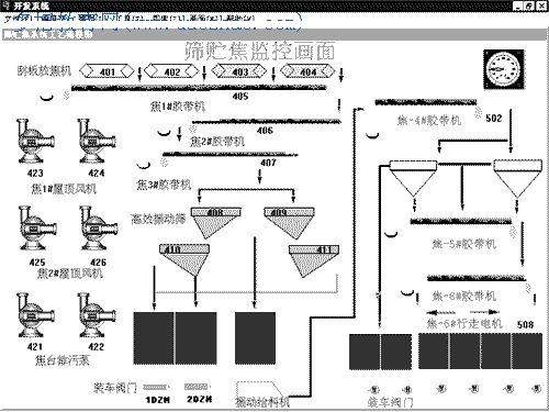 篩貯焦工藝設備運行狀態實現了大屏幕動態顯示,生產調度人員可以直觀地看到設備的運行狀態,實時掌握工藝系統設備的運行情況,為生產調度人員發出正確的生產指令提供了重要依據,提高了管理水平。