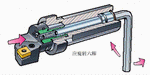 - 與前述相同,通過扇形塊夾緊刀具,但采用的是凸輪軸機構。用六角扳手將螺釘擰大約半圈 即可簡便地完成裝卸。