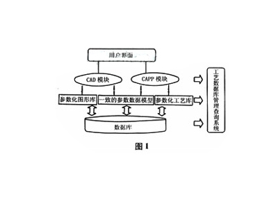 如圖1所示,系統(tǒng)功能的實現(xiàn)是按模塊化設計的,CAD和CAPP之間通過一致的參數(shù)模型和數(shù)據(jù)庫建立通訊,信息共享。系統(tǒng)還可再擴充CAM模塊,生成數(shù)控程序,以適應數(shù)控機床的要求。