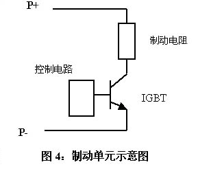 如果不把這部份能量消耗掉,過高的泵升電壓將使用變頻器出現保護,甚至會損壞變頻器,為盡快把電機反饋的能量消耗掉必須加裝裝制動組件,深圳康沃電氣公司專業生產的CVF-BU系列制動單元適用于各種通用變頻器,其示意圖如圖3,當制動單元控制回路檢測到直流母線電壓達到一值時控制其開關管IGBT開通,制動電阻RB接到回路中將電機的反饋的能量消耗在電阻上。 #p#分頁標題#e#