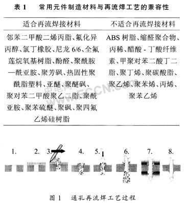 紅外再流焊爐不能用于通孔再流焊,因為它沒有考慮到熱傳遞效應對于大塊元件與幾何形狀復雜的元件(比如有遮蔽效應的元件)的不同。強制熱風再流焊爐有著極高的熱傳遞效率,可用于通孔再流焊技術。再流焊溫度曲線要合適,溫度設置太高會導致元件損壞,太低會導致焊膏不能完全溶化。圖10為通孔再流焊技術中焊膏熔化形成焊點的全過程。