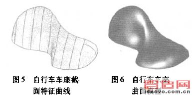以下給出的是利用Imageware與Pro/E結合進行逆向建模的例子。圖4是一個自行車車座的點云數據圖;圖5是在Image二中利用有關點云處理功能提取出的截面特征曲線示意圖,圖6是以提取出的截面特征曲線作為邊界,并在相鄰曲面片間的公共連接邊處設置相切約束后,輸人Pro/E中構造的曲面模型。