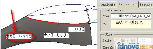 12.掃出后用底部平面剪切得到相貫線,分析偏差得到最大偏差大概為0.05mm.結(jié)果應(yīng)該可以了.當(dāng)然你還不滿意的話也可以把它剪掉一塊再補(bǔ)…..一般沒必要了,呵呵......