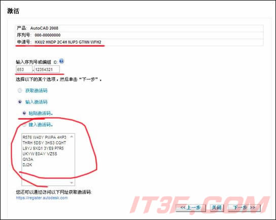 8、然后在“激活”頁面中輸入(用快捷鍵“Ctrl+C”和“Ctrl+V”復制粘貼)相應的“序列號”和“激活碼”,然后點“下一步”。