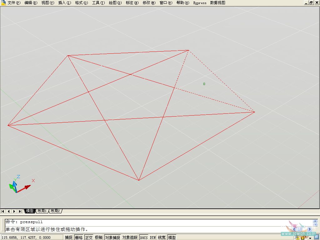 移動到你想拉的地方,好了,可以點鼠標左鍵了,然后拖動鼠標進行Z深度的操作,注意也可以直接輸入拉的高度,正、負都可以