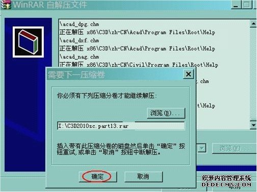 因為文件比較大,解壓過程比較長,請耐心等待一下,出現下面提示時請插入DVD2 然后點確定,