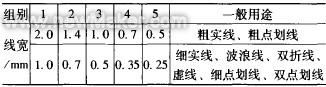 GB 4457.4―84中規(guī)定工程制圖的圖線分為粗、細(xì)兩種。畫圖時(shí),粗線的寬度b應(yīng)按圖形的大小和復(fù)雜程度在0.5~2mm范圍內(nèi)選定;細(xì)線的寬度約為b/3。粗線的寬度一經(jīng)選定,各種細(xì)線的寬度也就隨之而定。圖線寬度的推薦系列為0.18mm,0.25mm,0.35mm, 0.5mm, 0.7mm, lmm, 1.4mm, 2mm (0.18mm的圖線寬度盡量避免使用)。圖線有粗實(shí)線、細(xì)實(shí)線、波浪線、雙折線、虛線細(xì)點(diǎn)劃線、粗點(diǎn)劃線、雙點(diǎn)劃線,共八種,其中粗實(shí)線和粗點(diǎn)劃線的寬度為b,其余為b/3。