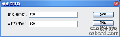 在需要替換的標注值內輸入150,在目標標注值內輸入100.點擊替換