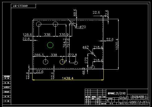 在選擇好舊圖紙和新圖紙之后點“比較”。中望CAD會以只讀的方式分別打開這兩幅圖紙。默認情況下在新圖紙中不同部分(即新增部分)的顏色為綠色,修改部分的顏色為黃色。相同的部分為淺灰色。如圖2。