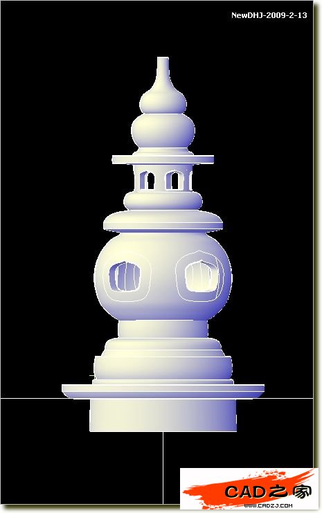2、在葫蘆形的香爐腳水面處畫一個面域,用做水中倒影的圖板