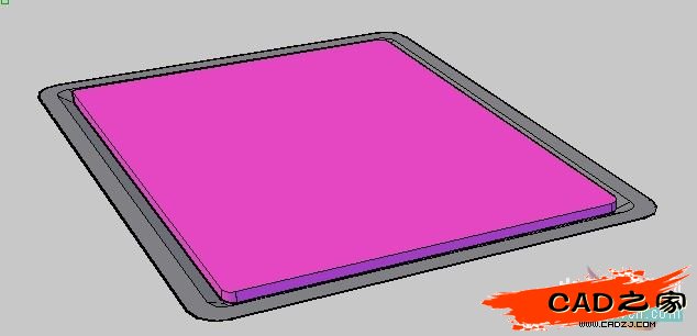 用抽殼(修改-實體編輯-抽殼)命令將上一步建立的梯形體做成像凹陷的餐盤的樣子。