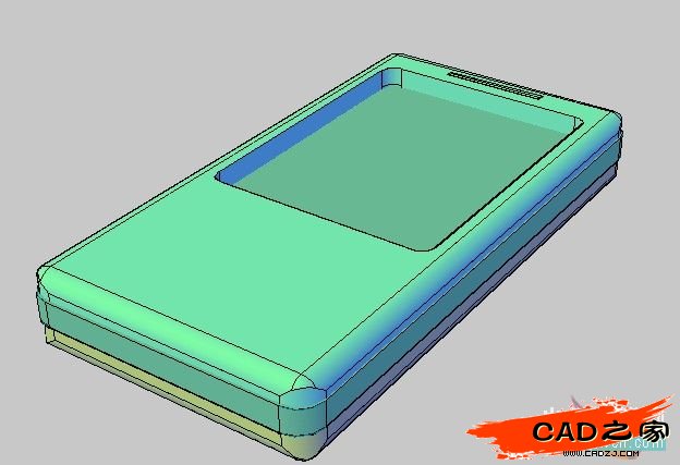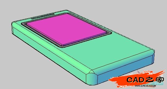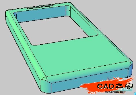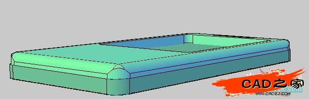 機(jī)身分為三個(gè)部分:上半部分,機(jī)框,下半部分。首先畫上半部分,將第一步畫出的機(jī)身線框拉伸成為實(shí)體,設(shè)定合適的拉伸距離與屏幕相接,如下圖