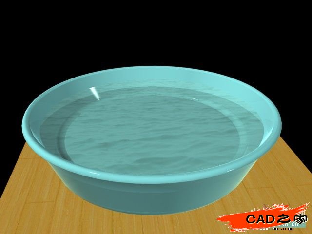 為了使“水”的材質(zhì)能透明顯示,這里還要修改“水“的材質(zhì)參數(shù),在“樣板”中選擇“玻璃.透明”,這樣就可透視盆內(nèi)了。這時(shí)如果一渲染就是一盆清水了(如圖3所示)。