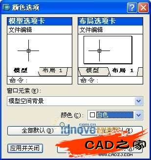 單擊“顏色”按鈕,在對話框上部的圖例中單擊要修改顏色的元素,在“窗口元素”框中將顯示該元素的名稱,“顏色”框中將顯示該元素的當前顏色。然后在“顏色”下拉列表中選擇一種新顏色,單擊“應用關閉”按鈕退出,如圖5所示。