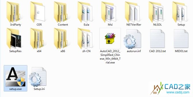 從Autodesk官網(wǎng)下載之后的CAD 2012是一個壓縮程序,先要對它進行解壓后,再用解壓后的文件進行安裝。