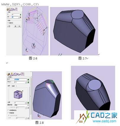 9、單擊【造型】工具欄下的【圓角】按紐 ,對(duì)瓶身正反面進(jìn)行倒角操作,如圖2.8所示。單擊確認(rèn)結(jié)束命令如圖2.9。