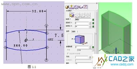 2、繪圖區(qū)域單擊鼠標(biāo)右鍵,選擇“插入草圖”,出現(xiàn)【草圖】屬性管理器,選擇XY平面后點(diǎn)擊確定,進(jìn)入草圖繪制,繪制草圖如1.1所示。點(diǎn)擊 退出草圖。單擊【拉伸】按紐 ,如圖1.2所示單擊確認(rèn)拉伸操作。
