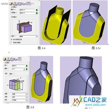 12、單擊【造型】工具欄下的【分割】按紐 ,對(duì)實(shí)體進(jìn)行分割,如圖3.4。單擊確認(rèn)結(jié)束命令,得到如圖3.5。