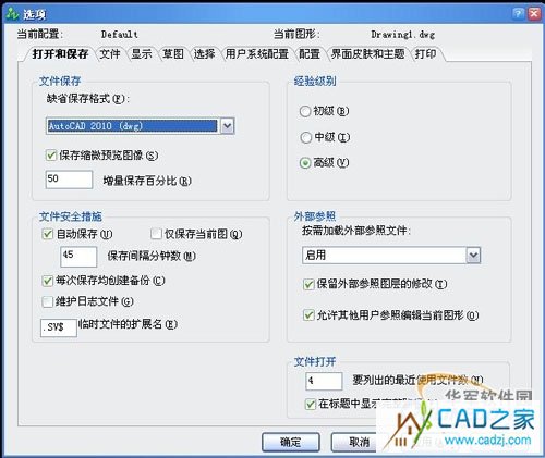 這里還有一個需要注意的是自動保存的時間我們還是盡量不要設(shè)置的太短,否則的話特別是在多文檔操作時有可能會出現(xiàn)繪圖時經(jīng)常會有圖紙進(jìn)行自動保存而導(dǎo)致軟件反應(yīng)遲緩甚至死機(jī)的現(xiàn)象。在中望CAD2011中還有個較好的設(shè)置就是我們還可以選擇“僅保存當(dāng)前圖”。這樣的話我們可以保證軟件更暢順的使用。