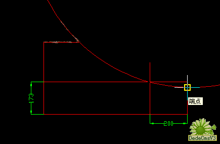 可是剩下的這段圓弧的圓心如何確定呢?這個問題困擾了筆者半天,從車間到辦公室,從辦公室再回到車間跑了兩趟才反應(yīng)過來:為什么一定要找到這個圓心呢,CAD中畫圓除了用圓心半徑的方法之外還有三種畫圓的方法:相切、相切、半徑法;兩點(2P)法;三點(3P)法。這里用三點(3P)法不就可以了么,其中有兩點已經(jīng)確定,只要再找到一個點就可以了。取出卷尺,自鋼板右直邊向左量取200mm,標(biāo)記,在標(biāo)記處向垂直方向上量出弧形到下直邊的距離173mm,好,回到CAD,做圖。使用偏移命令(OFFSET)把右直邊左偏移200mm,下直邊上偏移173mm,延長得兩條線的交點: