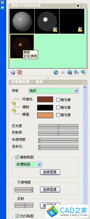 樣板:選“高級金屬”——具有更多選項的材質,包括可以用于創建特殊效果的特性(例如模擬反射)。