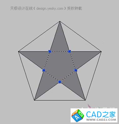 一、CAD中利用五邊形角點連線的方式繪制五角形平面,修建后將五角星平面做成免域。