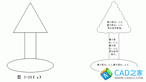 用云線繪制一棵樹,把圖3-20(a)轉化為圖3-20(b),按如下步驟操作:
