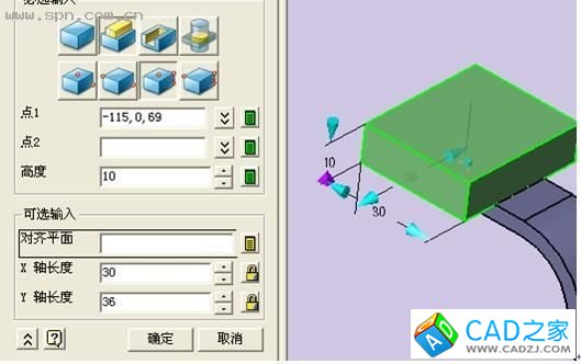 選擇六面體功能,建立第三個實體特征。