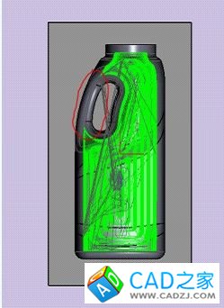 當我們選擇一個比較大的刀具進行第一次開粗的時候,有一些局部的地方沒有加工到,如圖五: