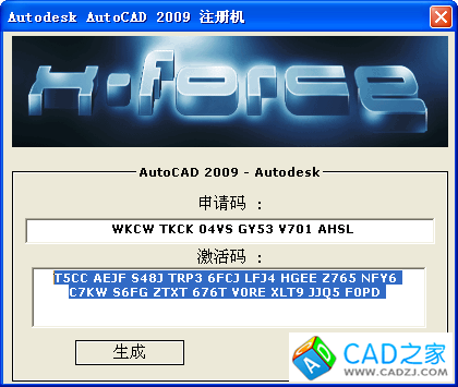 把申請碼“ WKCW TKCK 04VS GY53 V701 AHSL”放入到CAD2009注冊機中: