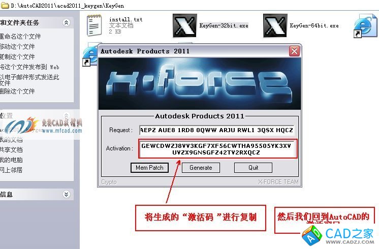 第十一步:使用AutoCAD注冊機將“申請號”轉換成“激活碼”。