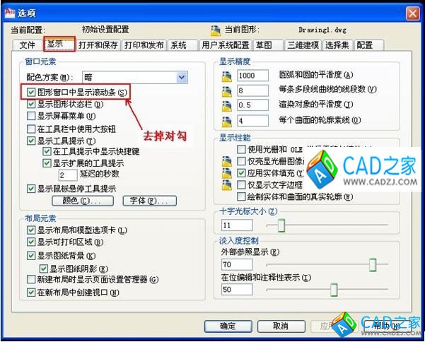 也許有人還用無(wú)滾輪的鼠標(biāo),那么這時(shí)滾動(dòng)條也許還有點(diǎn)作用,如果平移圖形幾乎不用,那么我們?cè)鯓尤サ魸L動(dòng)條,來(lái)增加AutoCAD的繪圖區(qū)域呢?