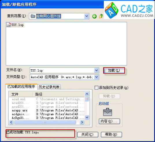 2、入AppLoad,空格,找到需要加載的外掛程序后,點“加載”,下面會顯示“已成功加載……”,表示加載成功,如下圖所示
