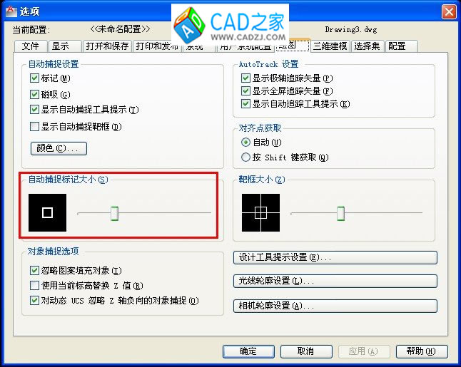 CAD如何設置自動捕捉標記的大小