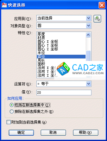 下面以選擇所有直徑為20的圓為例,