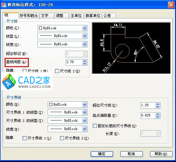 注意:這種方法只適用于調整線性標注和角度標注之間的間距。