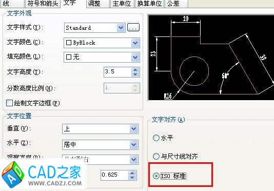 命令行里輸入D,然后點擊"文字"選項卡,把文字的對正方式設置成“ISO”標準。當然你也可以設置成“水平”但是這樣的話,其他的標注,比如線性、對齊等等,其標注文字也會變成水平的。